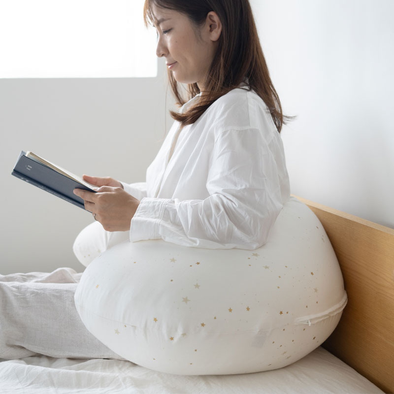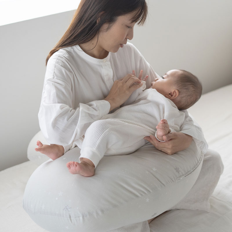 三日月抱き枕のリニューアルモデルとして発売した抱き枕です。抱きやすく、体を預けやすい形を研究し、授乳クッションとしての使い心地にもこだわりました。