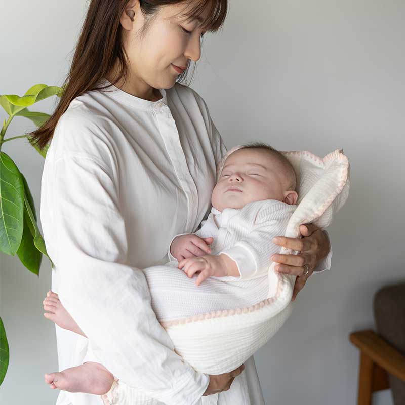 ぐっすり眠った後は窒息事故防止のためにそっと抱っこ布団を引きぬいてください。